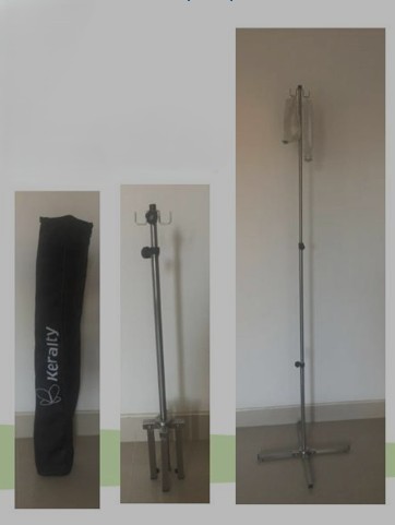 Con tubo central retractil, con altura de guardado de un metro, con ruedas tipo medicas.